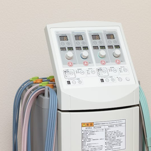 関節や筋肉など部位や症状によって、干渉波療法・ハイボルテージ療法・立体動態波療法・マイクロカレント療法など、最適な電気療法を選択して治療をおこないます。